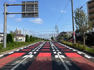 片側3 車線ある主要幹線道路での舗装道修繕工事の沿線には、商業施設やマンション駐車場などがあり、交通量と人の通行も多い場所でありました。